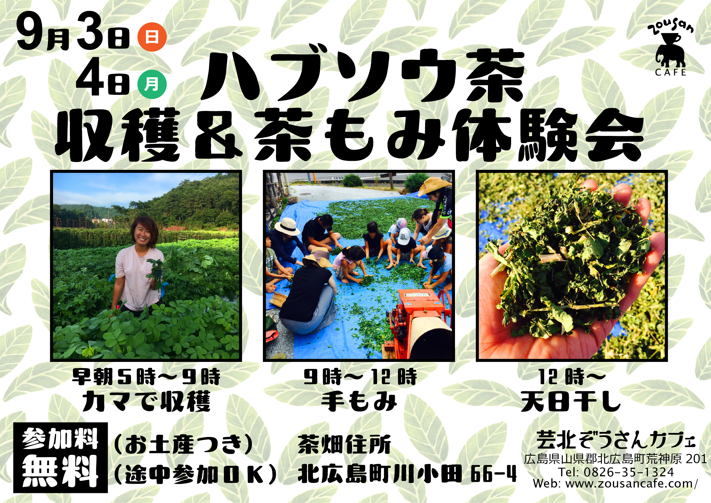 〜人気のハブソウ茶体験会のお知らせ〜 明日3日(日曜日)、明後日4日(月曜日)の二日間で、ハブソウ茶の収穫&手揉み&天日干し体験会を行います。 伝統的な健康茶の作り方を体験してみませんか。 参加費無料、お土産付きです! ご連絡お待ちしてます!